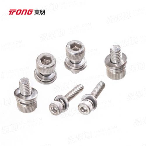 304不锈钢杯头圆柱头内六角三组合螺丝钉滚花平垫弹垫组合